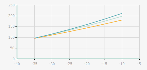 | 蒸發(fā)溫度 | 制冷量+/-5% | 能耗+/-5% | 現(xiàn)在能效+/-5% | 氣體流速+/-5% | 能效+/-7% | ||||