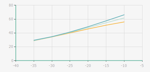| 蒸發(fā)溫度 | 制冷量+/-5% | 能耗+/-5% | 現(xiàn)在能效+/-5% | 氣體流速+/-5% | 能效+/-7% | ||||