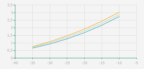 | 蒸發(fā)溫度 | 制冷量+/-5% | 能耗+/-5% | 現(xiàn)在能效+/-5% | 氣體流速+/-5% | 能效+/-7% | ||||