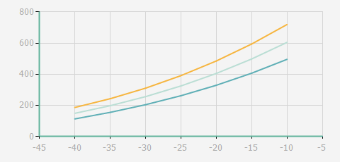 | 蒸發(fā)溫度 | 制冷量+/-5% | 能耗+/-5% | 現(xiàn)在能效+/-5% | 氣體流速+/-5% | 能效+/-7% | ||||