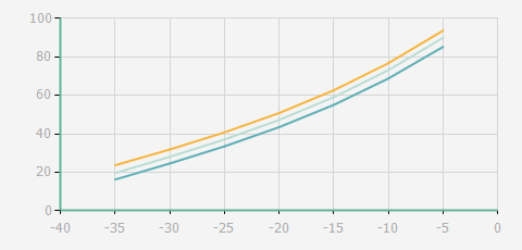 | 蒸發(fā)溫度 | 制冷量+/-5% | 能耗+/-5% | 現(xiàn)在能效+/-5% | 氣體流速+/-5% | 能效+/-7% | ||||