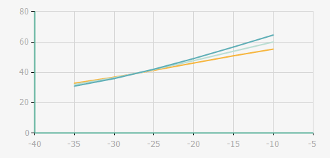 | 蒸發(fā)溫度 | 制冷量+/-5% | 能耗+/-5% | 現(xiàn)在能效+/-5% | 氣體流速+/-5% | 能效+/-7% | ||||