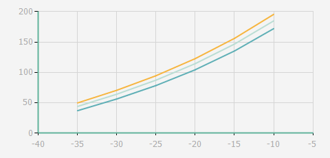 | 蒸發(fā)溫度 | 制冷量+/-5% | 能耗+/-5% | 現(xiàn)在能效+/-5% | 氣體流速+/-5% | 能效+/-7% | ||||
