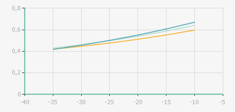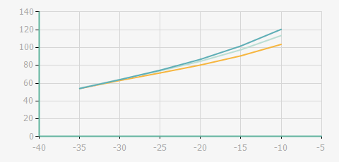 | 蒸發(fā)溫度 | 制冷量+/-5% | 能耗+/-5% | 現(xiàn)在能效+/-5% | 氣體流速+/-5% | 能效+/-7% | ||||